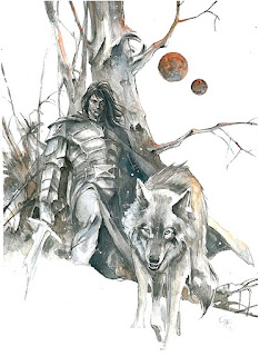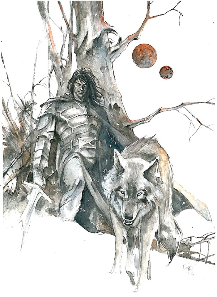 Da ultimo, il richiamo a momenti di fiere e di incontri non più virtuali e magari con la possibilità di sketches (le mie copie di Darek 0 e 1 presentano un bel disegno di Modugno e la camere delle mie tre figlie si fregia di tre bei ritratti in versione elfica delle tre bambine!) e non scordiamoci la collaborazione con il loro amico e collega Giovanni Tàlami che ha già disegnato una stupenda copertina pittorica per il numero 1 e ora ha già offerto un’altra illustrazione che vedete far bella mostra di sé anche in questo editoriale.