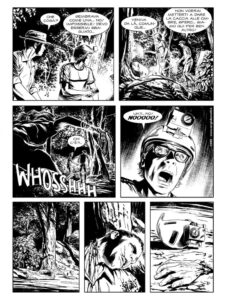 Ma poi ci sono due citazioni molto fini: c’è un cattivo che si chiama Krueger come il fidato compagno di tanti avventure di Mister No e soprattutto in uno dei tanti flashback a mezzatinta siamo condotti negli anni ’30 e qui la antagonista del Dampyr in questa storia incontra un uomo che si chiama Drake e si presenta con il viso e il tipico cappello del padre del nostro Jerry Drake, alias Mister No! E ancora la bellissima vampira Camille Monfort viene creduta dagli indios come la presenza fisica di Ananga, lo spirito della dea giaguaro contro cui hanno lottato sia Mister No sia Dylan Dog. Siamo in una sorta di easter egg da triplice crossover rivolto a lettori Bonelli di varie generazioni.