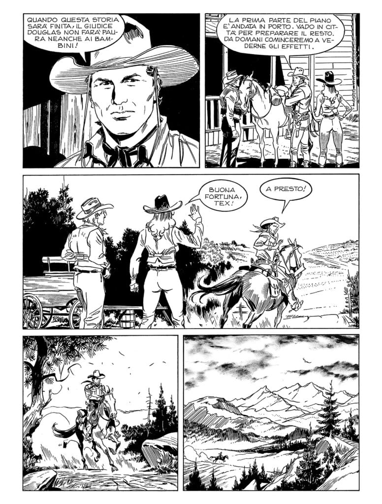 Il primo albo, come abbiamo ampiamente scritto su queste pagine, era solido e, nonostante qualche spiegone di troppo, aveva dalla sua un Tex duro e granitico e un soggetto che più classico non si può quello della città governata dalla cricca di corrotti e prepotenti. Insomma, c’erano tutti gli ingredienti per una bella storia.